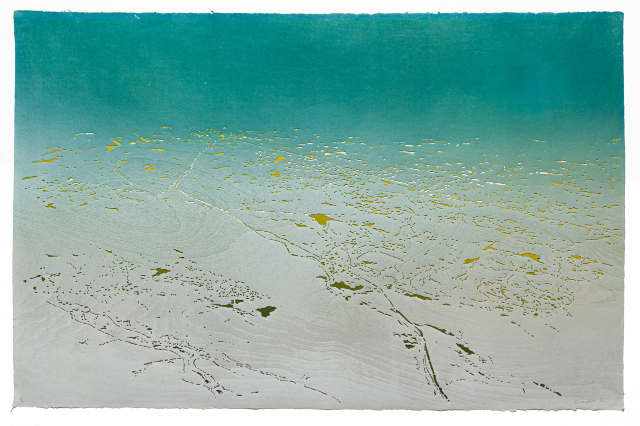 Two-layer perforated woodblock print on Kozo #8 paper